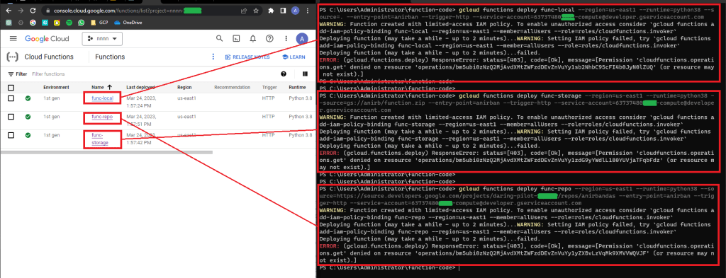 Here’s the deployment of cloud function via gCloud deploy command in action