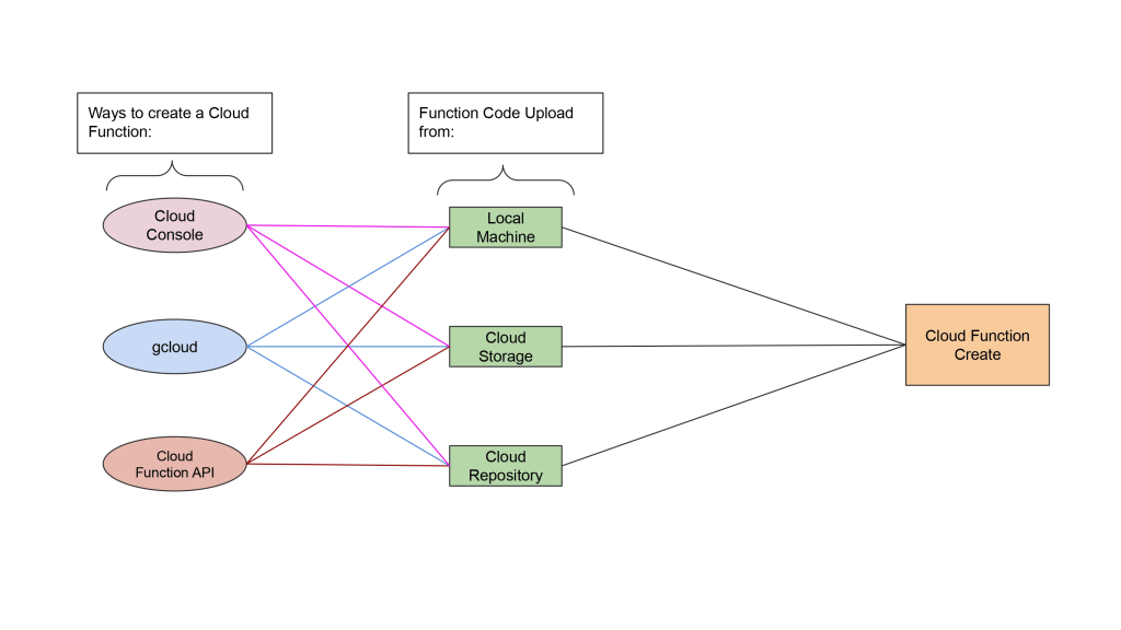 If you’re creating a Cloud Function in GCP, you can use Cloud Console, gCloud Command, or Cloud Function API to do so. Regardless of the method you choose, you will need to upload the code into the Cloud Function.